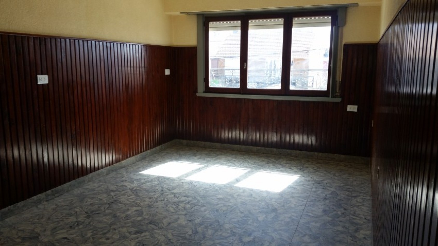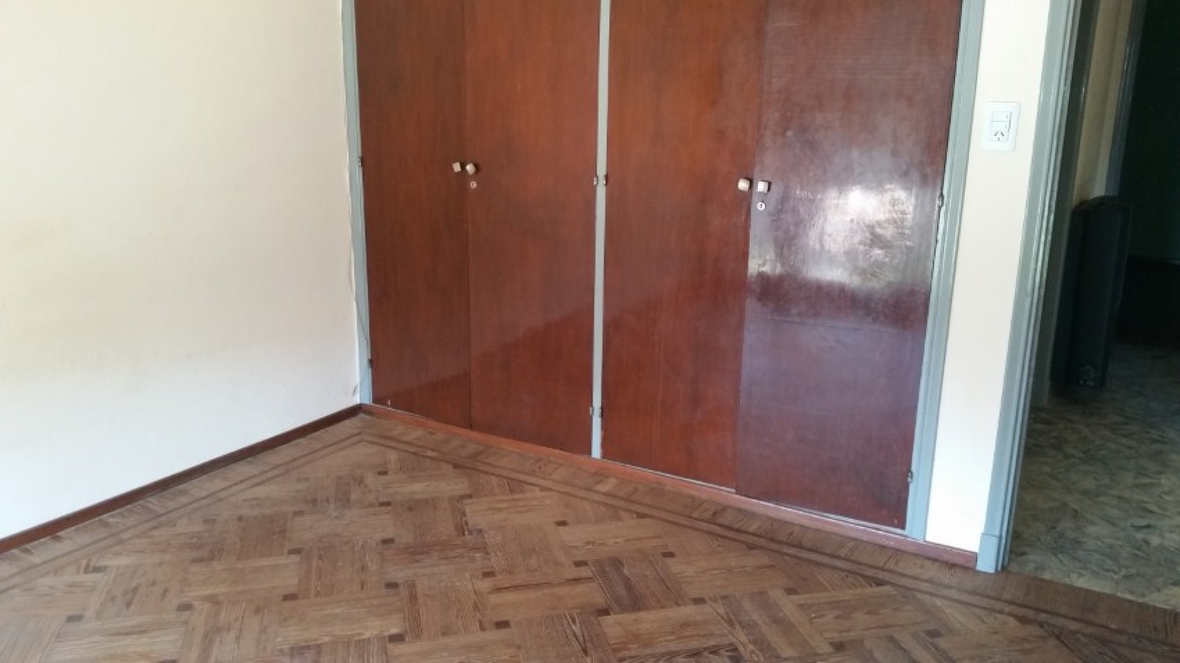gran comedor, cocina chica, 2 dormitorios con pisos parquet, uno de ellos con balcón, baño, persianas plasticas